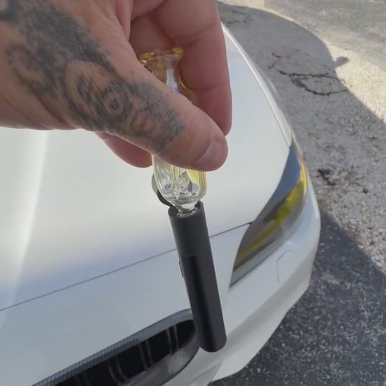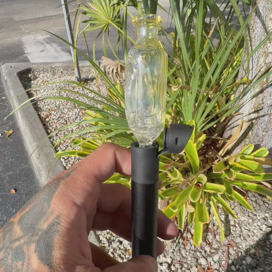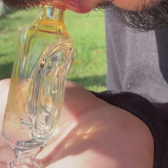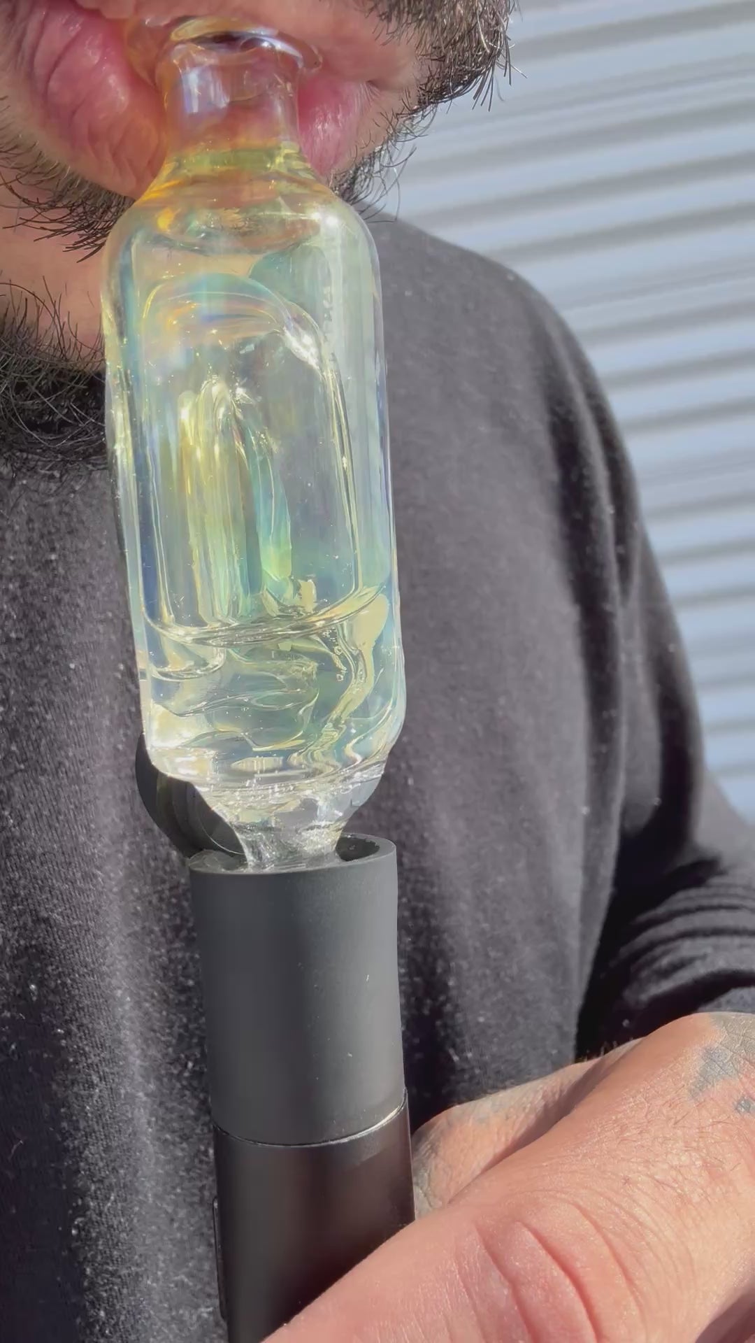 Upgrade your Puffco experience with this handblown pivot top, designed to fit the Puffco pivot. Crafted with a shimmering silver fume overlay.